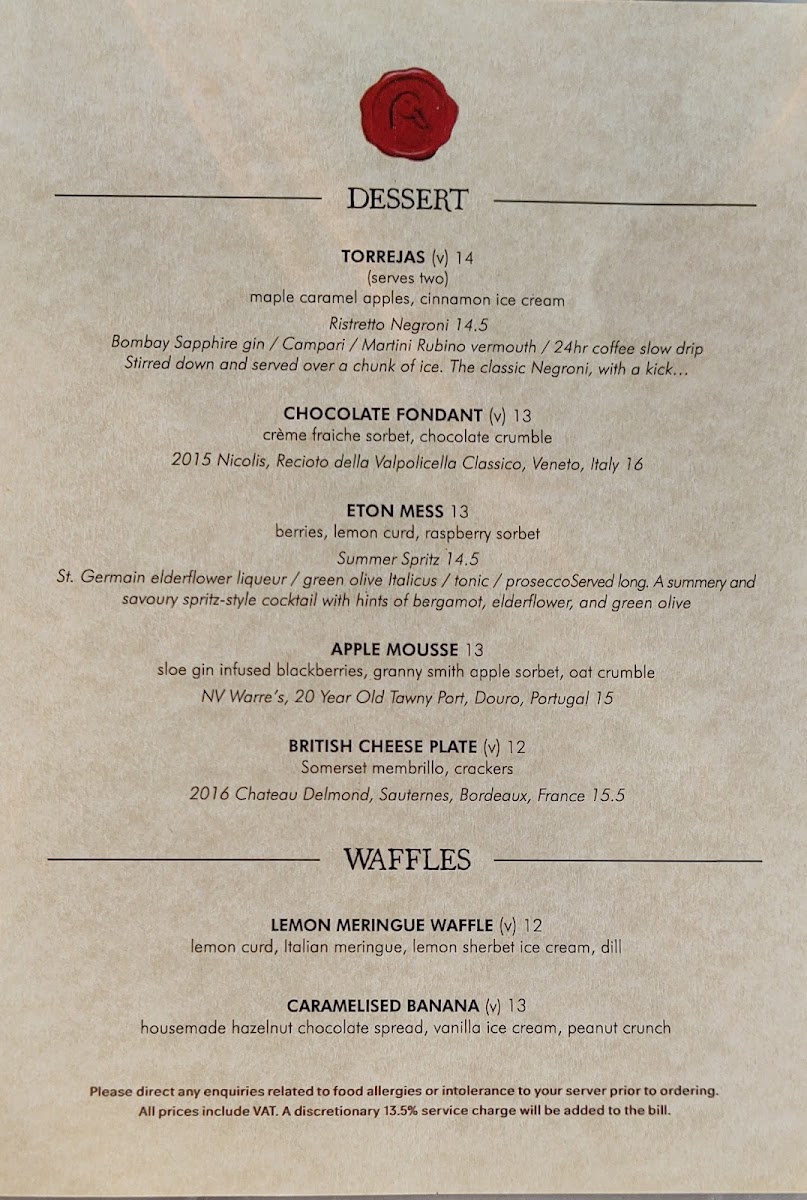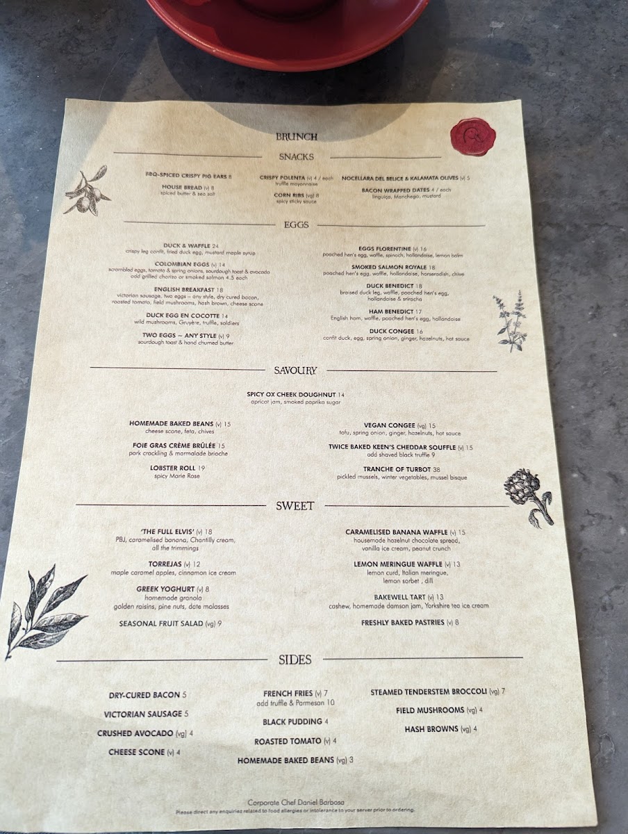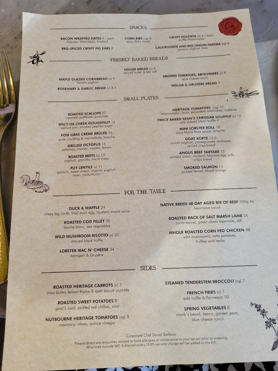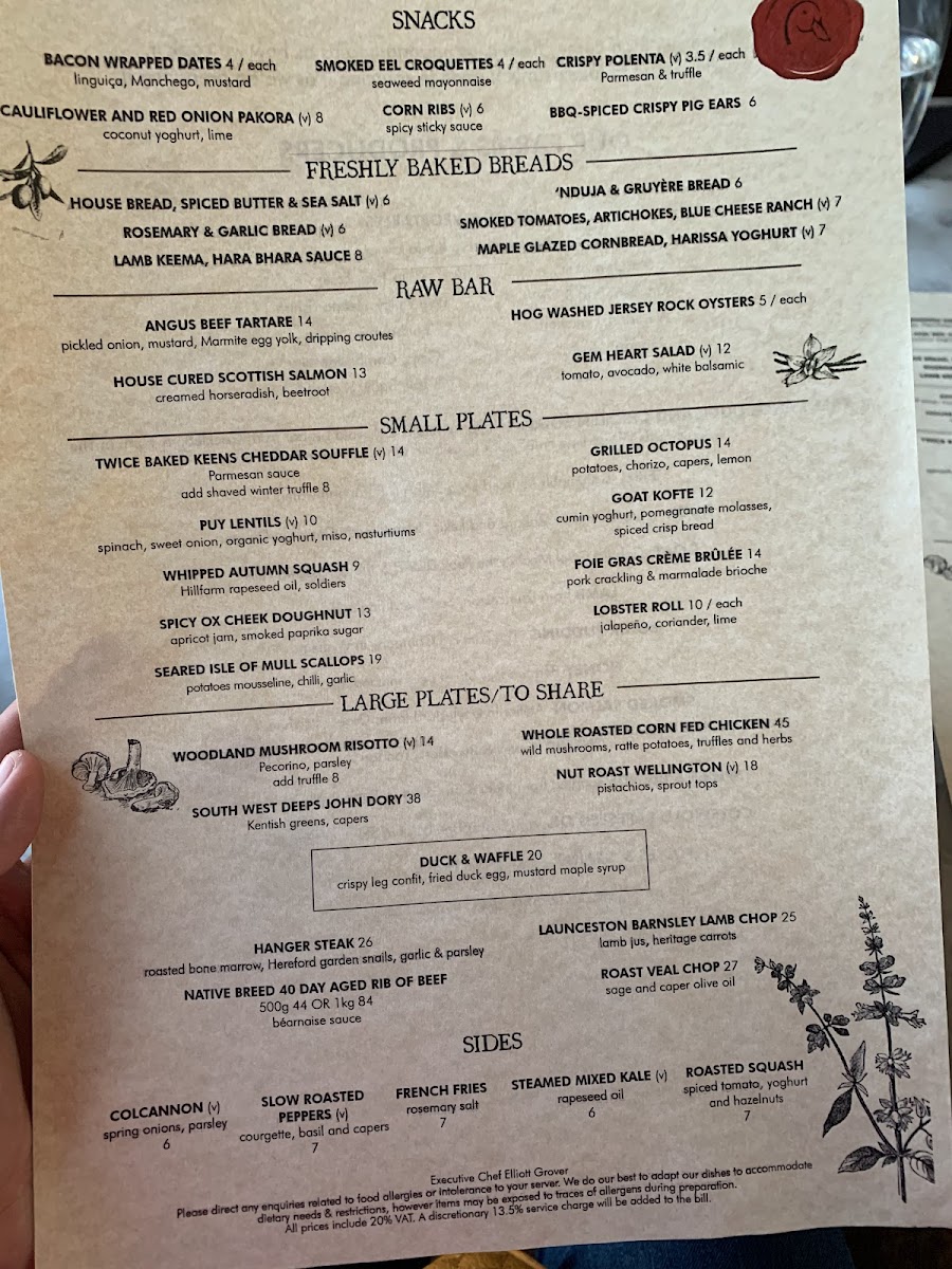 The restaurant is quite upscale and located on an upper floor, offering a 360-degree view of London. However, since I'm from Bangkok, I'm not particularly impressed by rooftop experiences. The duck dish lives up to the hype—it was delicious. Drinks were decent, and the staff were attentive and courteous.